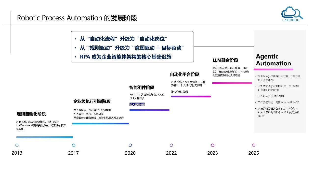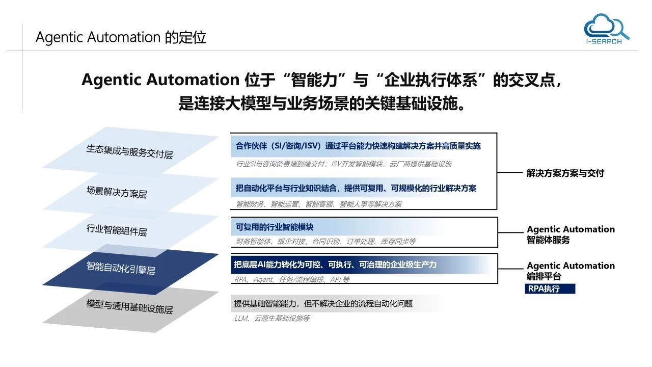 Li Bo defined agent automation as "the intersection of intelligent capability and enterprise execution system". Instead of replacing the existing RPA and AI technologies, it integrates them into a layered and scalable technology architecture: